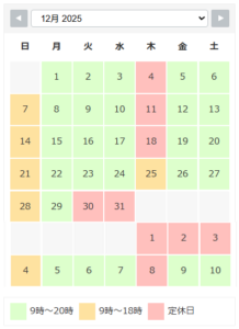 2025年 年末・年始の営業日です。