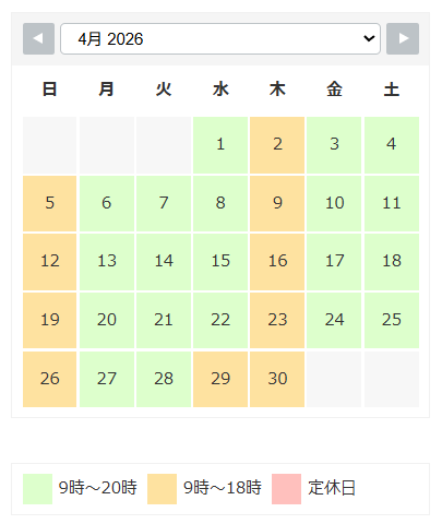 4月の営業日です。